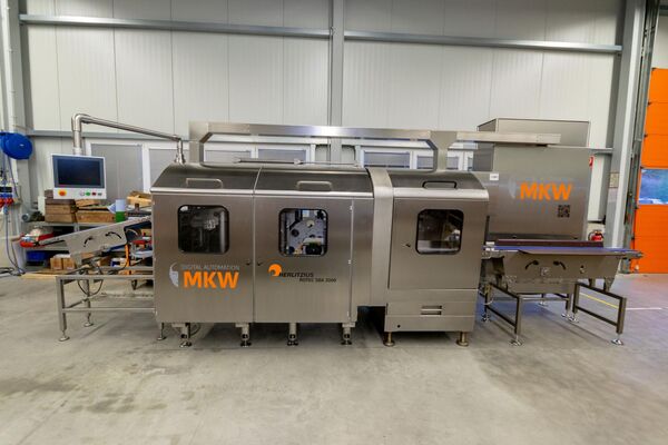 So kann der Schaltschrank wahlweise extern aufgestellt oder direkt über der Schneidemaschine montiert werden. Der Schneideraum selbst kann 1- oder 2-kanalig ausgestaltet werden, beim Obertransport installieren wir auf Wunsch anstelle eines Transportbands Transportketten. Anfallende Schneidreste und Abfälle werden über ein Bandsystem abgeführt oder alternativ in Schubladen gesammelt. Um gleichbleibende Portionsgrößen zu garantieren, besteht die Möglichkeit, eine Waage hinter dem Portionierer zu installieren. Ein Wendestern legt die portionierten Pakete anschließend um. Eine Zuführung der Brote sowie die Weiterverarbeitung können ebenso, optional durch die MKW realisiert werden.