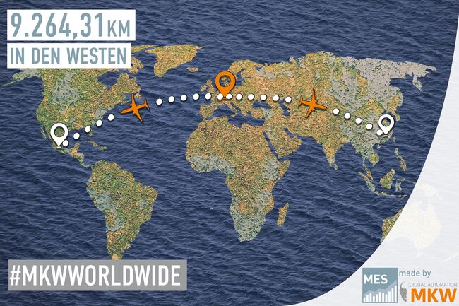... , das ist die größte Entfernung zu einem unserer Kunden, gemessen an der Luftliniendistanz. Diese Wegstrecke ist gleichzeitig die größte, die eines unserer MES-Terminals jemals zurückgelegt hat. Auch die Distanz in Richtung Osten ist beachtlich. 8.368,12 km (Luftlinie) sind es in diese Himmelsrichtung. Dies bedeutet aufsummiert eine Gesamtdistanz von 17.632,43 km die unsere östlichste von unserer westlichsten Anlage trennt.