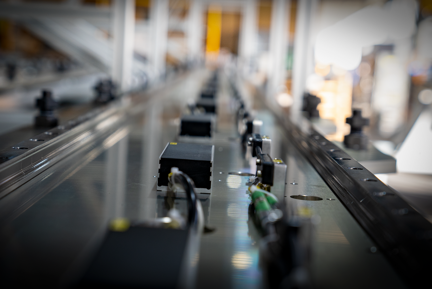 They stand there expectantly and wait to be mounted. Handling robot of a decommissioned machine, combined with a state-of-the-art FTS system. This flexible Bosch Rexroth transport system enables higher accuracy and speed in transporting and positioning workpieces than conventional systems. The motion sequences can be individually programmed and thus enable independent control of the individual workpiece carriers. Even robots of previous generations can be easily placed and integrated along the assembly line.